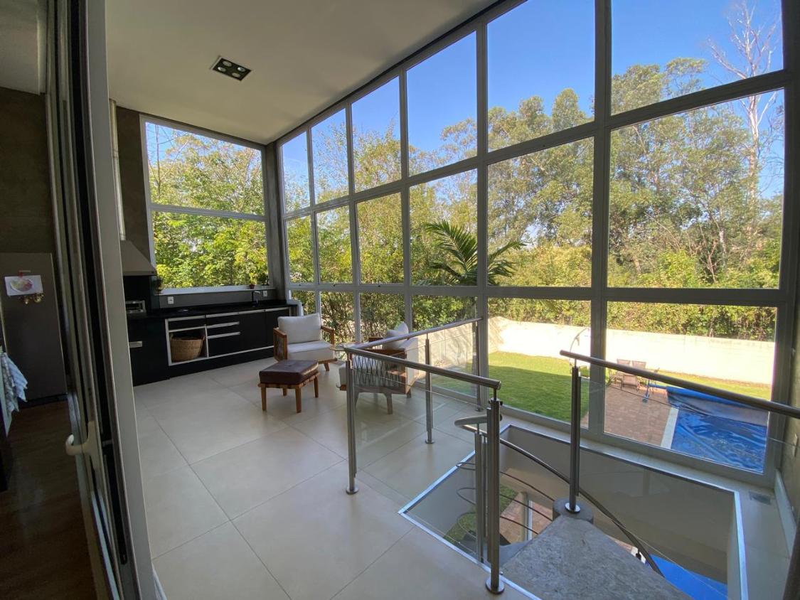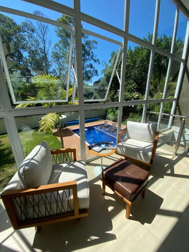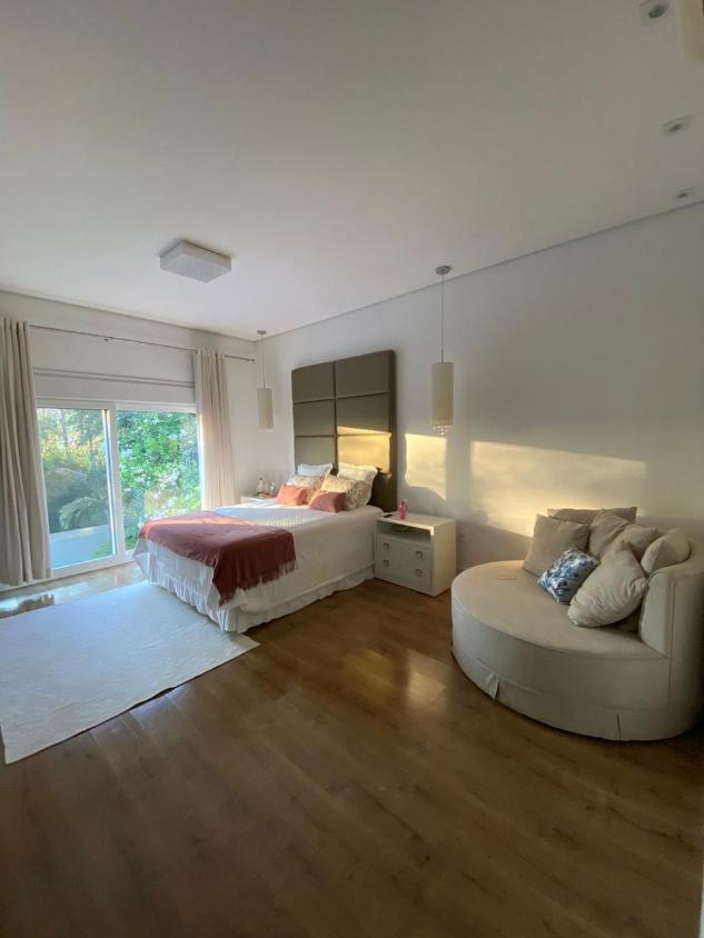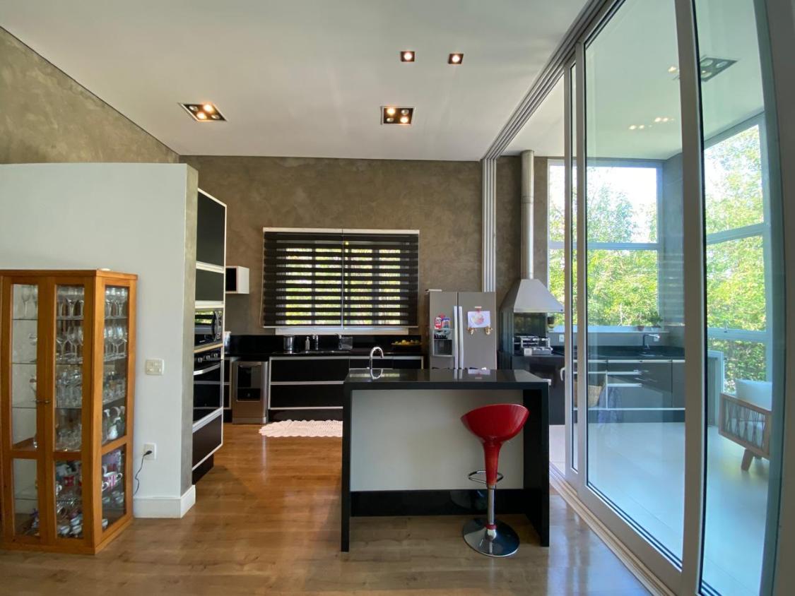 A sala de estar é iluminada e ventilada, com duas lareiras ecológicas. A sala de jantar acomoda 12 pessoas e a cozinha possui uma ilha com cooktop e uma grande bancada com cuba dupla. As 3 suítes são amplas, com closet, persianas automáticas e ar-condicionado. A suíte master, reformada, tem 2 duchas em um amplo box e espaço para banheira. Todos os chuveiros e torneiras têm aquecimento solar.