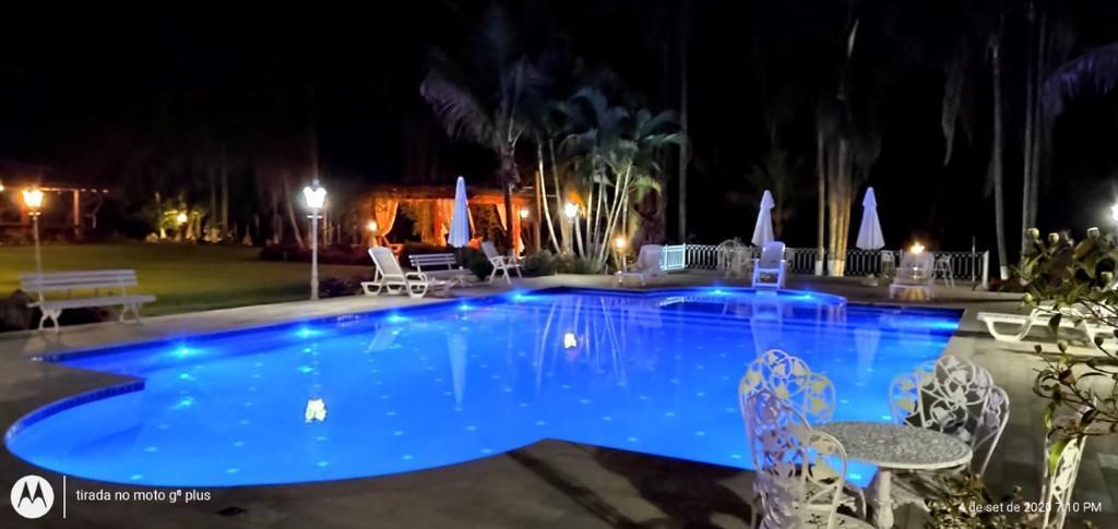 Duas casas principais, com um total de 2.400m2 de área útil, 16 suítes, 20 banheiros, 3 fogões à lenha, jardim de inverno, piscina recém reformada, vestiários, sauna, churrasqueira, pergolado, casa na árvore, capela, campo de futebol, 3 casas de caseiro, cocheiras e 3 açudes.