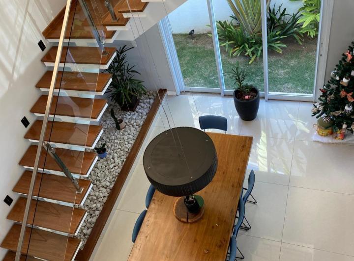 Referência: 767 - Linda casa em condomínio fechado no Jardim Novo Mundo! 3 suítes amplas, sendo uma master com banheira, closet e pias e chuveiros duplos. Sala de TV que pode ser convertida em mais uma suíte, amplo escritório, sala de jantar, sala de estar com lareira e cozinha em conceito aberto. Pé direito alto! Jardim, varanda com churrasqueira e garagem que comporta até 4 carros (2 cobertos). Clara e com muita luz natural.