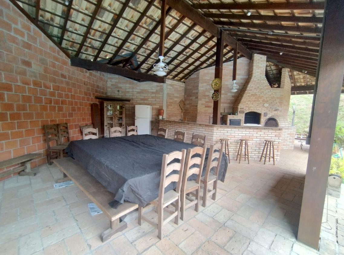 4 suítes (virada para a piscina ) Sala com mezanino Cozinha com fogão a lenha Piscina, churrasqueira, forno a lenha, fogão a lenha no lado oposto da casa. Poço semi artesiano ( 36m ) Casa do caseiro anexa a casa. ( Aprox. 30m2 ). Murada na frente e alambrado ao redor.