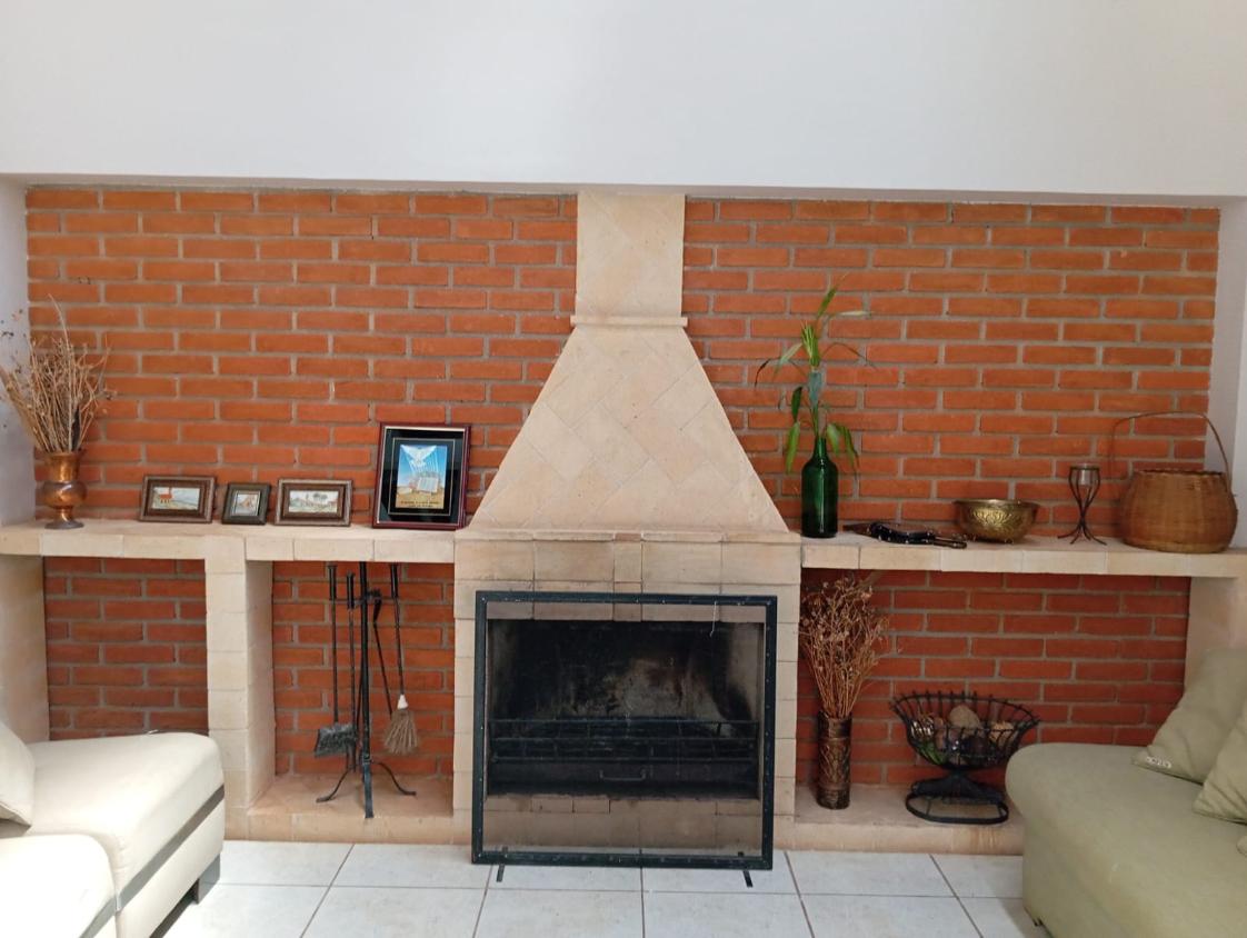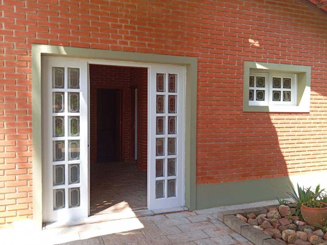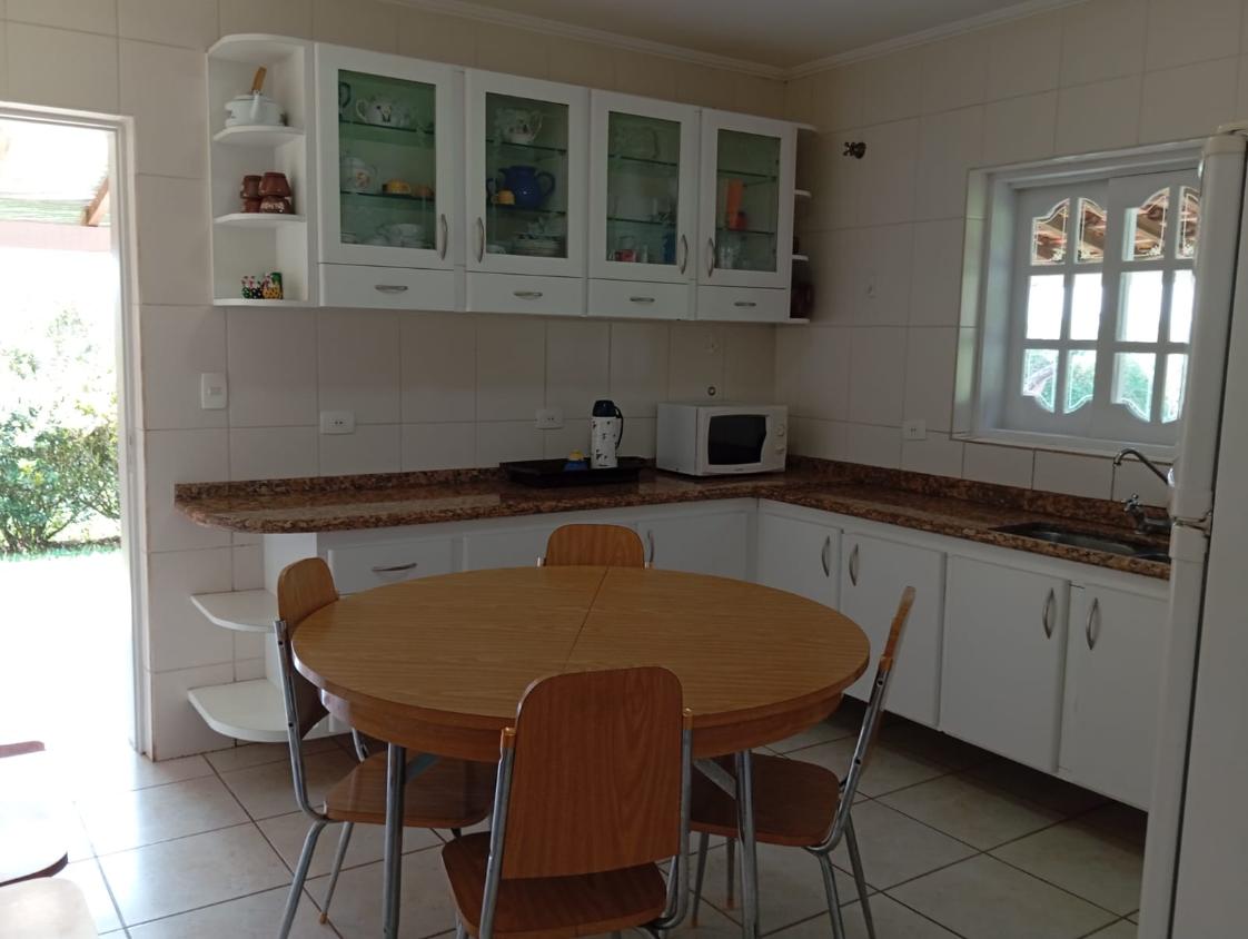 Possui casa principal com 3 suítes, cozinha, sala de jantar, sala de TV com lareira, quarto de empregada e lavanderia.