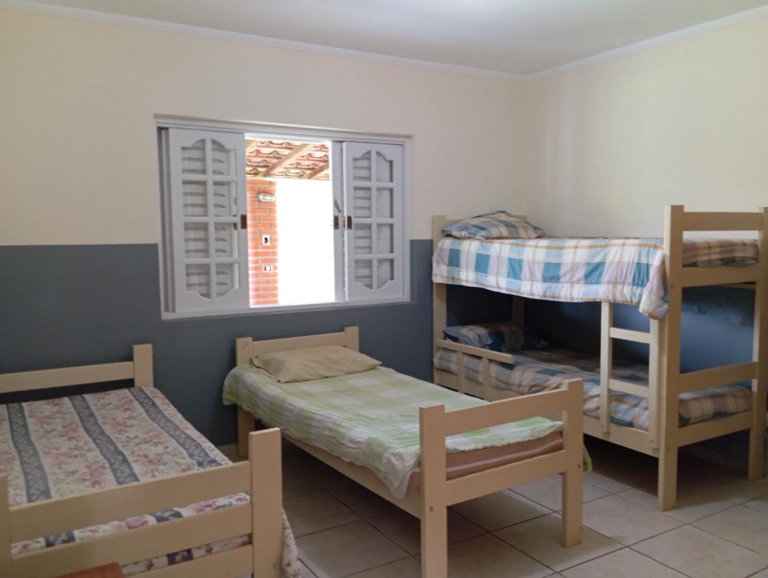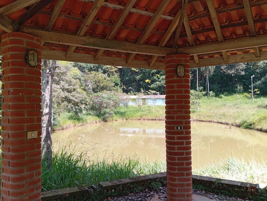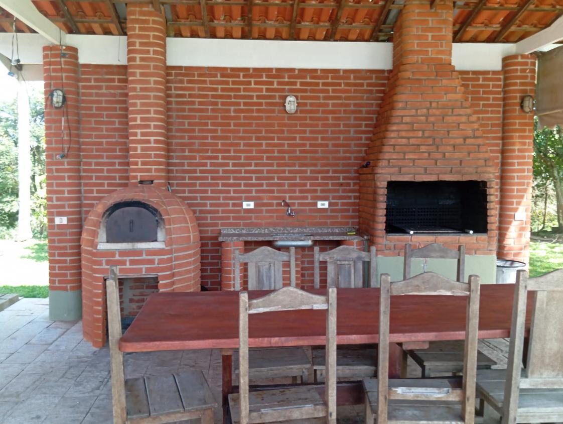 Casa de caseiro, campo de futebol, lago com casa de pesca, churrasqueira, vestiários masculino e feminino com sauna, piscina, pomar e poço artesiano.